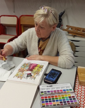 Annie fait une aquarelle